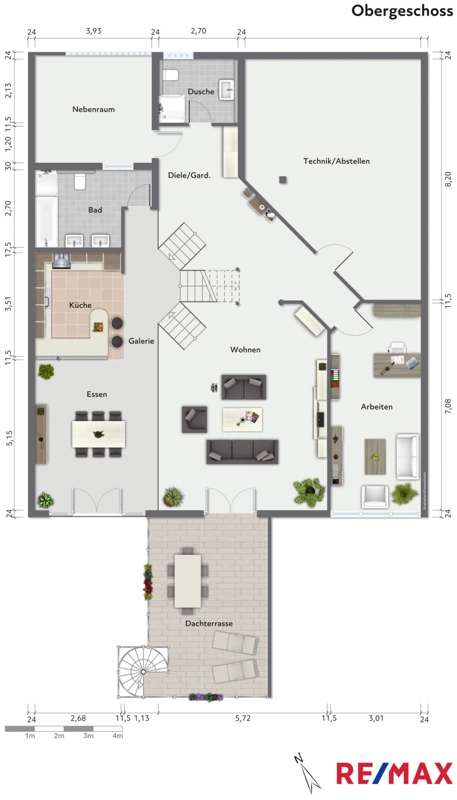 Das Objekt verfügt mit seiner Gesamtfläche von insgesamt 1.108 m² über viel Platz und Potential für eigene Ideen zur Ausgestaltung.