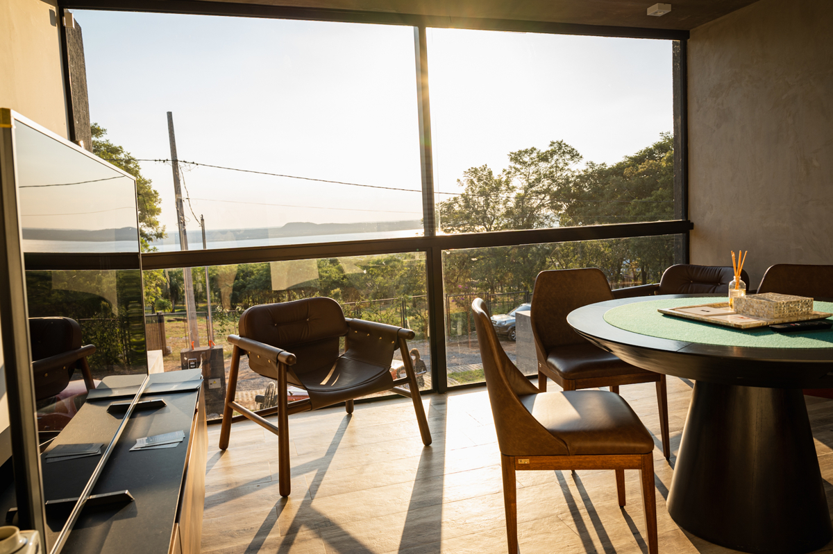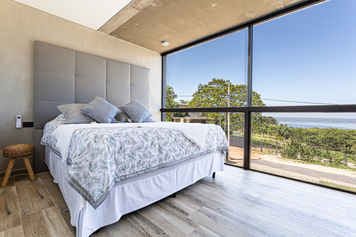 Die großzügig dimensionierte Dachterrasse krönt das Anwesen und bietet einen atemberaubenden Panoramablick auf den Ypacarai-See. Hier können Bewohner täglich die malerischen Sonnenuntergänge genießen und die entspannende Atmosphäre dieses einzigartigen Ortes erleben.