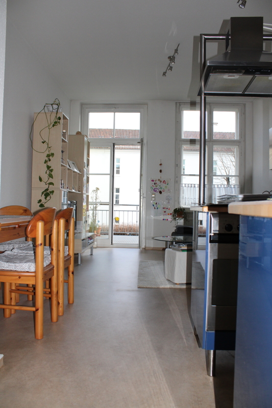 Durch die großzügigen Fensterelemente zum Balkon gelangt viel Tageslicht in die Räume und verleiht der Wohnung eine freundliche und einladende Ausstrahlung.
