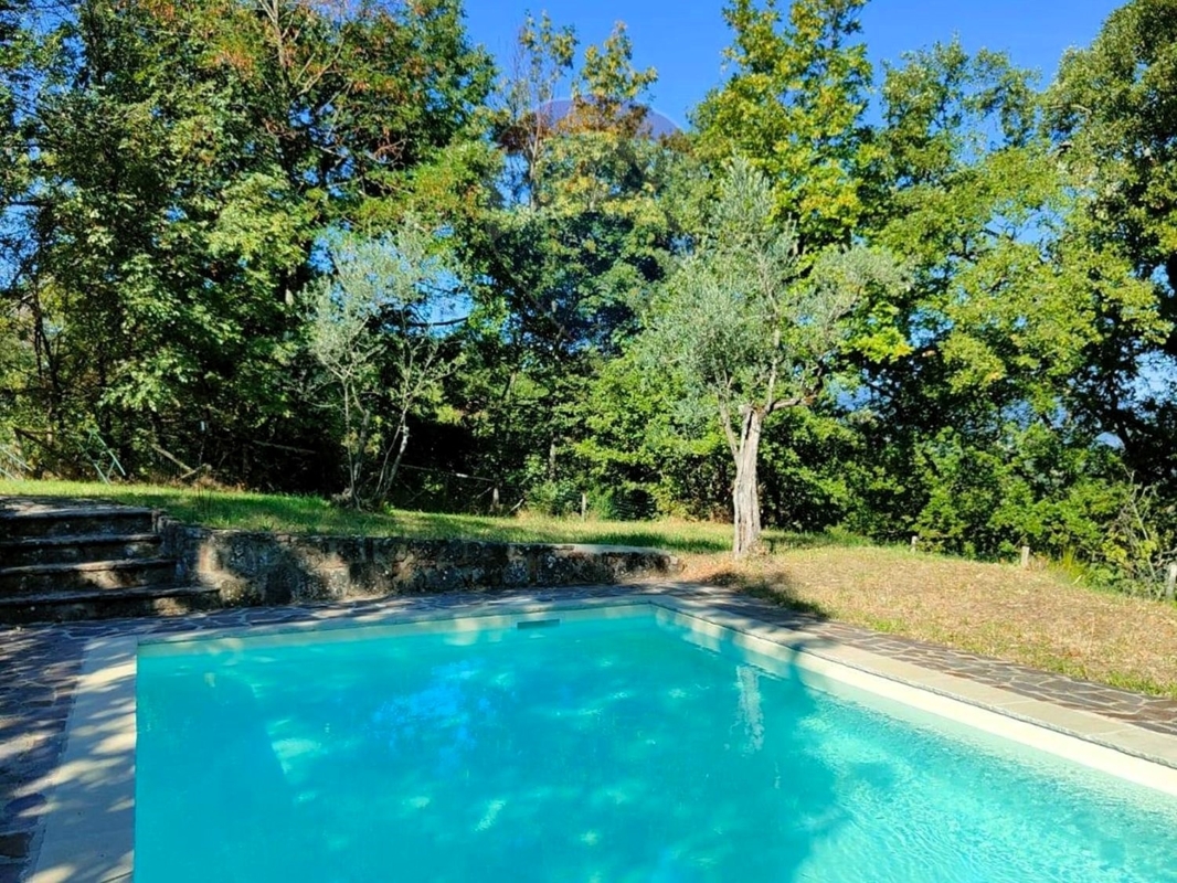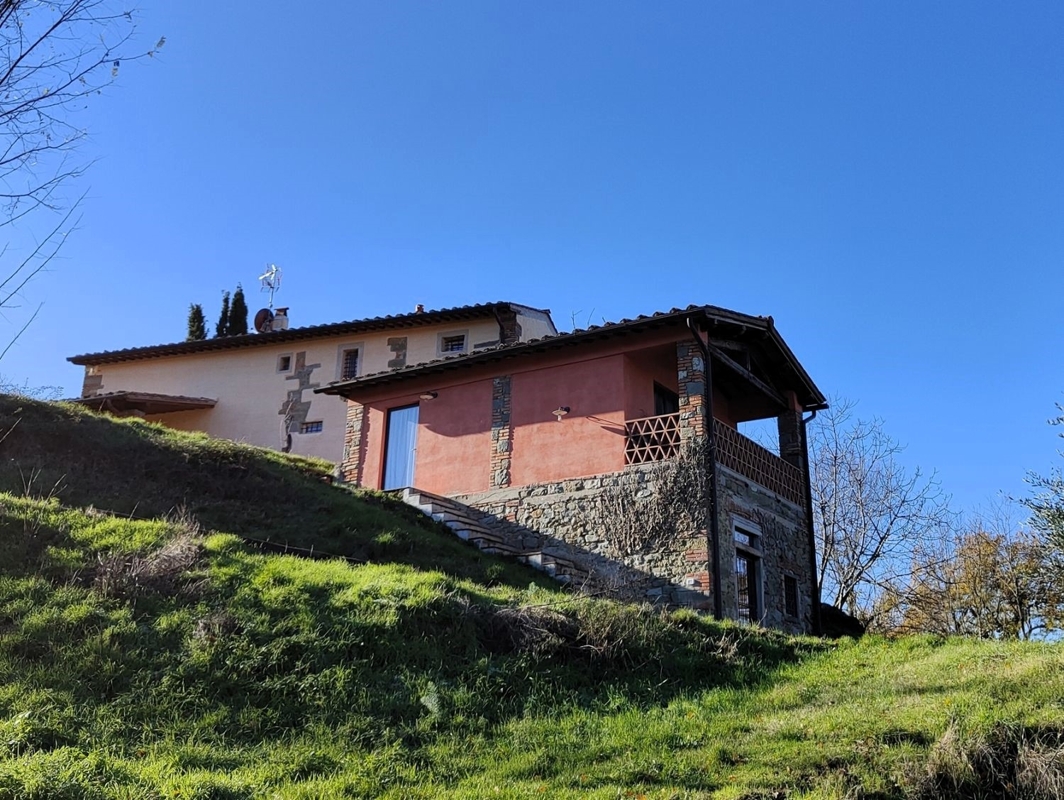 Das wunderschöne antike Bauernhaus aus dem Jahr 1100 mit eigenem Pool liegt mitten im Wald auf einer sonniger Anhöhe mit atemberaubenden Panorama, 30 km südlich von Florenz in der Gemeinde Reggello.