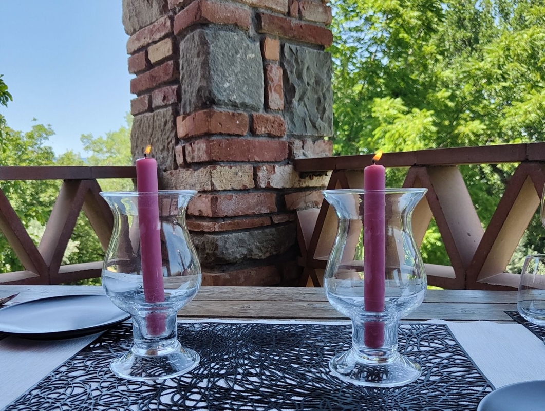 Im Nebengebäude gibt es einen sehr großen hellen Raum mit Balkon und ein großes Badezimmer mit Massagedusche. Aktuell wird das Nebengebäude als Ferienhaus vermietet.