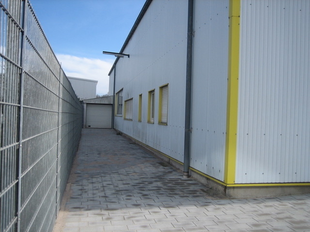 Der Komplex wurde im Jahr 1993 errichtet und umfasst eine funktionell aufgebaute Halle mit einer Nutzungsfläche von rund 600 Quadratmetern, ergänzt durch Sozialräume, einem Büro und einer PKW-Garage. Ein besonderes Merkmal dieser Halle ist die eigene Trafostation, die unter anderem die Versorgung von zwei CNC-5-Achsenmaschinen und fünf CNC Flächen- oder Planschleifmaschinen gewährleistet. Darüber hinaus sind in der Gesamtfläche von ca. 130 Quadratmeter eine zentrale Kompressoranlage integriert und zusätzlich kann ein Vordach montiert werden.Bei dem weiteren Ausbau der Flächen sind verschiedene Möglichkeiten denkbar: So können beispielsweise Tore an der Längsseite zwischen den Hallenträgern montiert werden und ein Elektroanschluss für ein freitragendes Funkhoftor ist bereits verlegt.