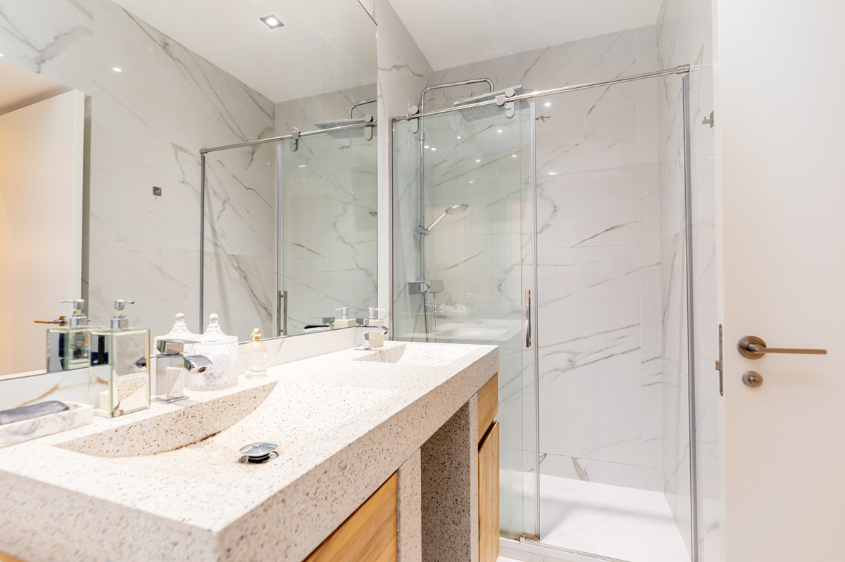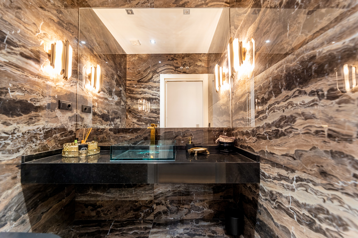 Diese außergewöhnliche Immobilie bietet Ihnen ein komplettes Stockwerk, das sich über 270 m² erstreckt von denen sich 230 m² perfekt für ein luxuriöses Wohnen eignen. Mit insgesamt 4 großzügigen Schlafzimmern und 5 modernen Badezimmern ist ausreichend Platz für Ihre Familie und Gäste vorhanden. Die Immobilie verfügt über 2 geräumige Wohnzimmer, die ideal für gesellige Treffen und entspannte Abende sind, sowie eine moderne Küche, die mit den neuesten Geräten ausgestattet ist und das Herzstück des Hauses bildet.