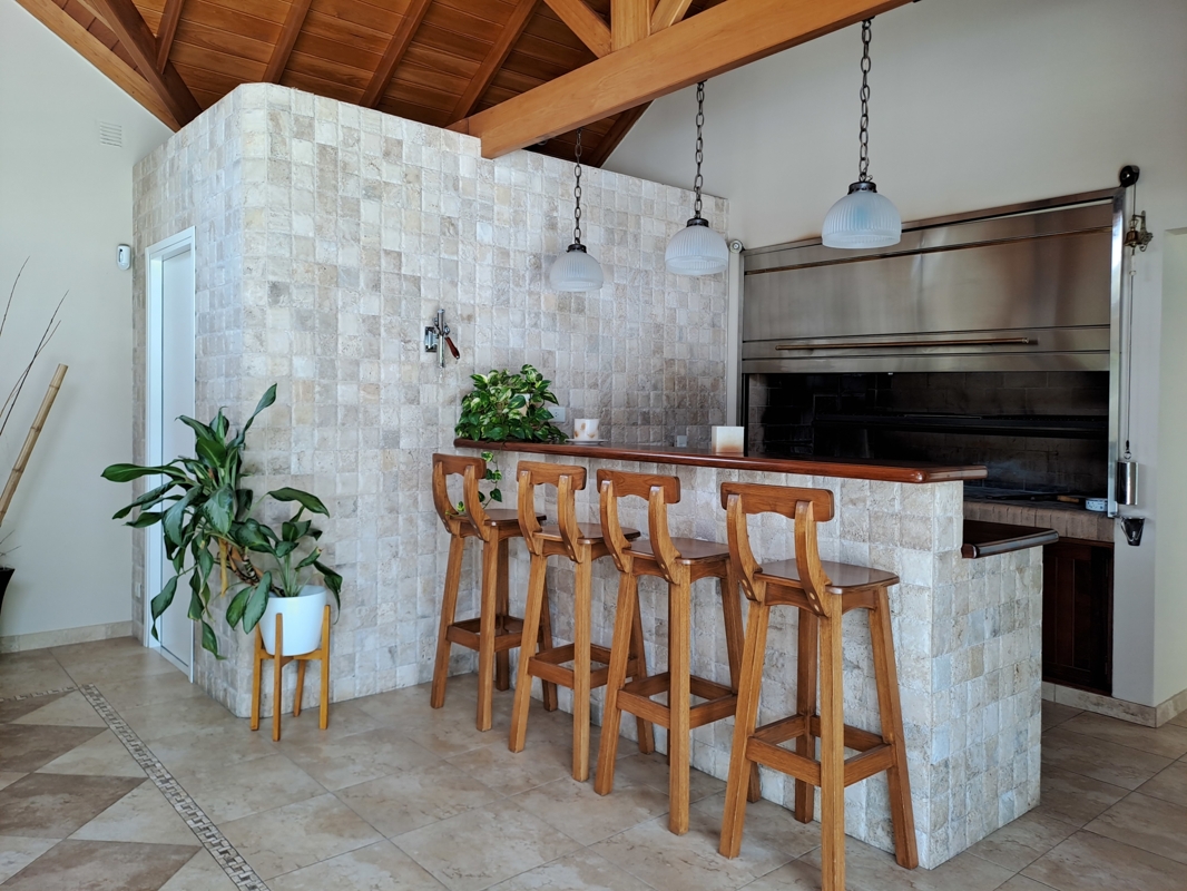 Das Erdgeschoss bietet ein großes Wohnzimmer, ein Büro, eine Gästetoilette, eine moderne Küche und einen Essbereich sowie einen gemütlichen Familienraum. Der traumhafte Indoor Grillplatz lädt zu den besten Steaks mit ein, während der große Bar- und Badebereich für Entspannung sorgt.