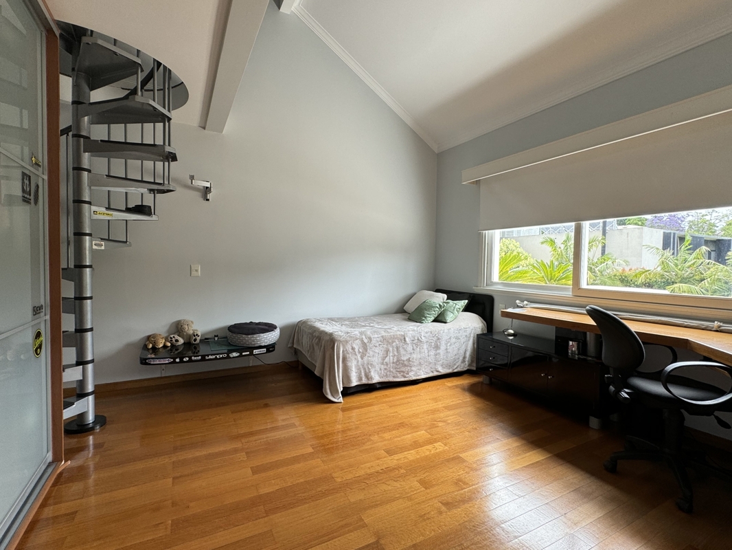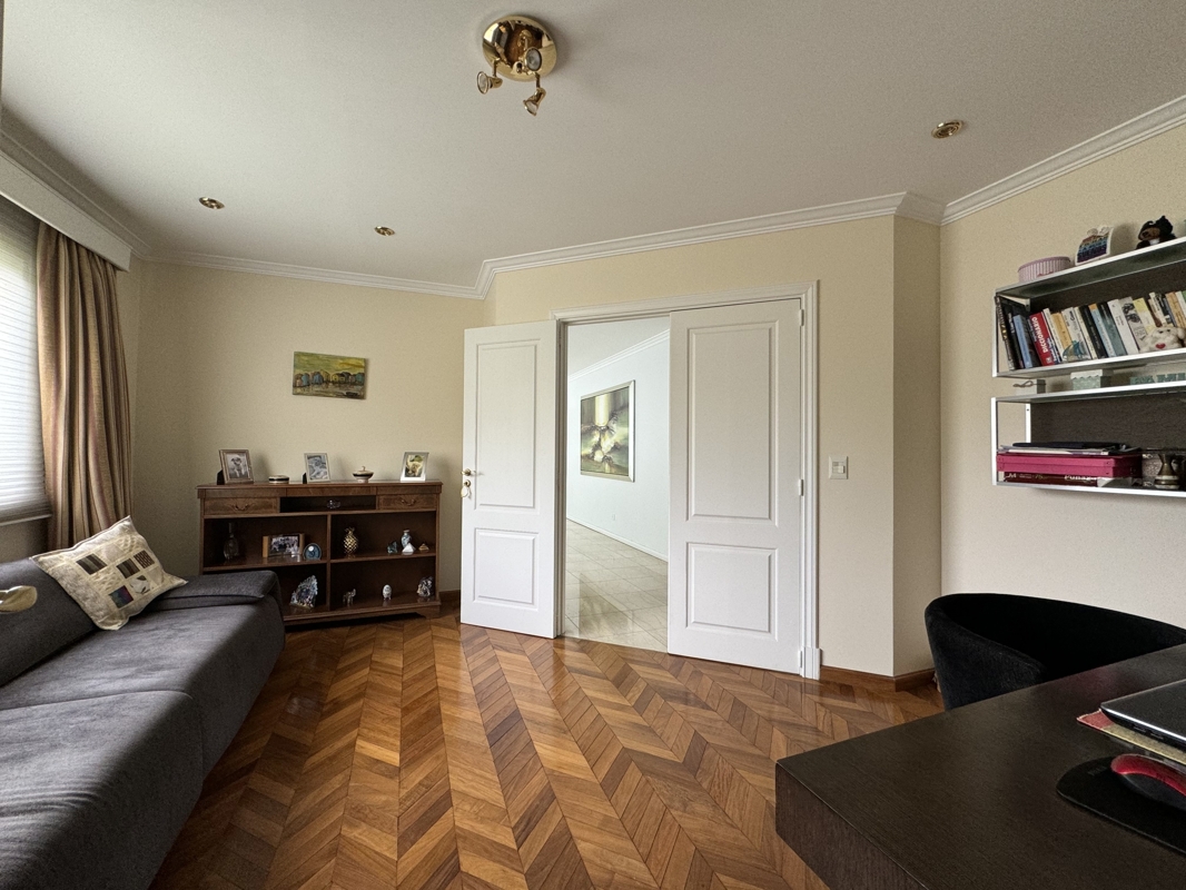 Im Obergeschoss befindet sich die Hauptsuite mit einem großzügigen begehbaren Kleiderschrank und einem luxuriösen Badezimmer. Von hier aus haben Sie Zugang zu einem Balkon mit Blick auf den Garten und den beeindruckenden Blockinnenraum. Zwei weitere Junior-Suiten mit Zwischengeschoss und Büro oder Schlafzimmer bieten genügend Platz für Familie und Gäste. Zusätzlich gibt es Doppelzimmer für das Servicepersonal mit eigenem Bad.