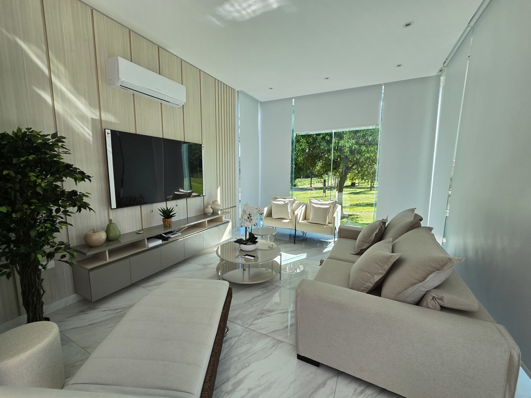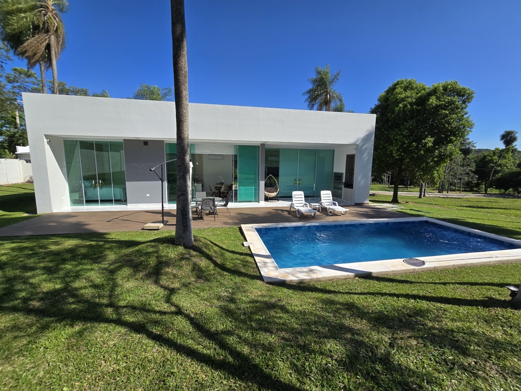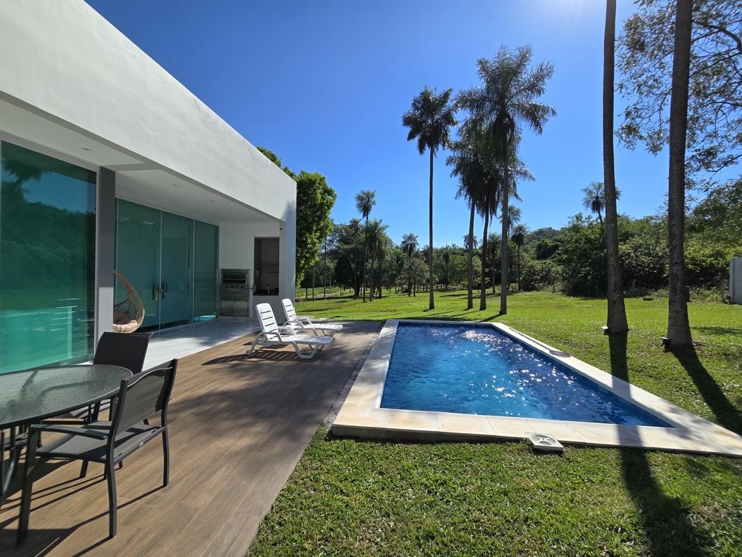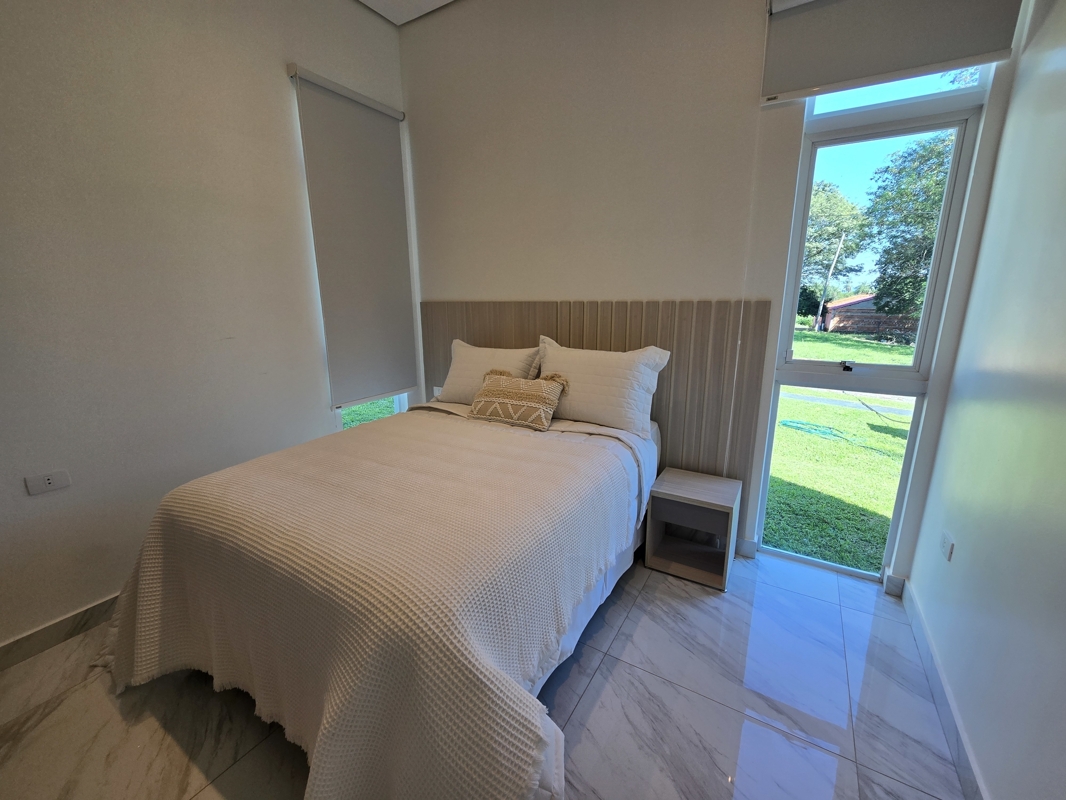 Erleben Sie Luxus und Komfort in einem der exklusivsten Wohngebiete Paraguays: Villa Real in San Bernardino. Diese atemberaubende Immobilie bietet Ihnen alles, was das Herz begehrt – von modernster Ausstattung bis hin zu idyllischer Natur und absoluter Privatsphäre.Auf einem großzügigen Grundstück von 1.097 m² erbaut, erstreckt sich dieses 2024 fertiggestellte, voll möblierte Haus über eine Wohnfläche von 130 m². Es verfügt über zwei geschmackvoll eingerichtete Zimmer und zwei elegante Bäder, die höchsten Wohnkomfort bieten.
