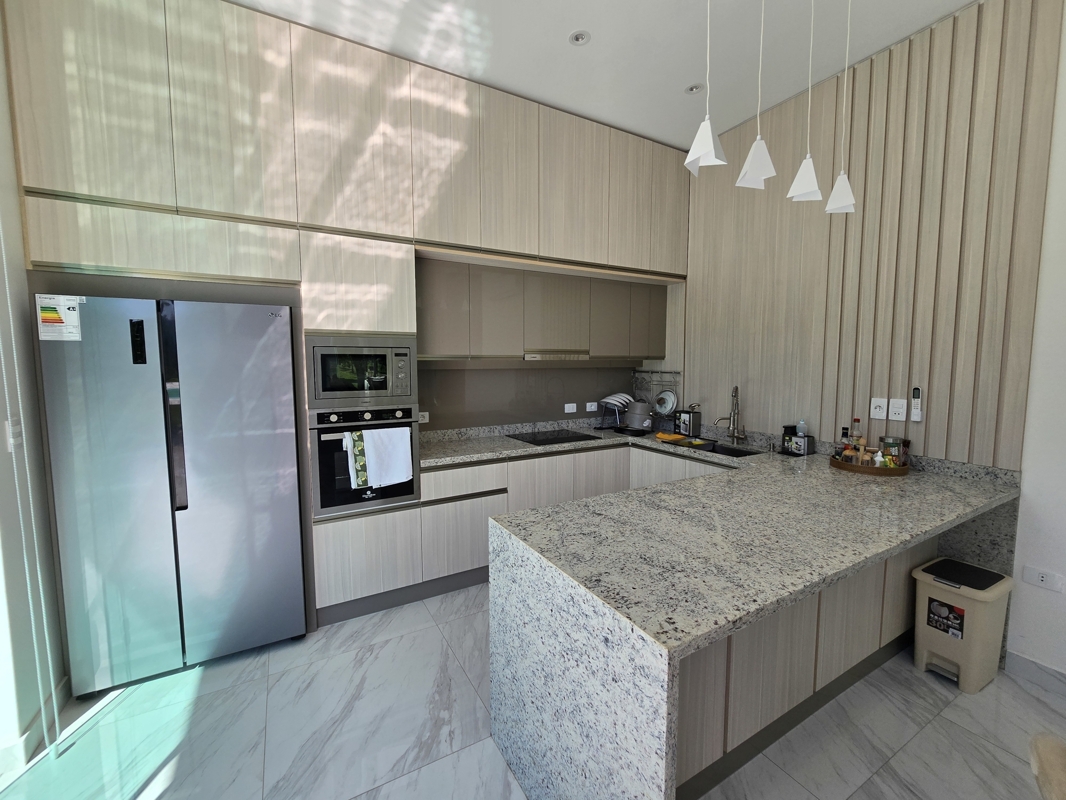 Die durchdachte Bauweise und das großzügige Grundstück gewährleisten maximale Privatsphäre. Die moderne, vollständig ausgestattete Küche und das integrierte Wohn- und Esszimmer laden zum Wohlfühlen ein. Der großzügige Barbecuebereich (Quincho) mit Grill ist ideal für gesellige Abende mit Freunden und Familie, während der einladende Pool im Hinterhof an heißen Sommertagen für die perfekte Erfrischung sorgt.