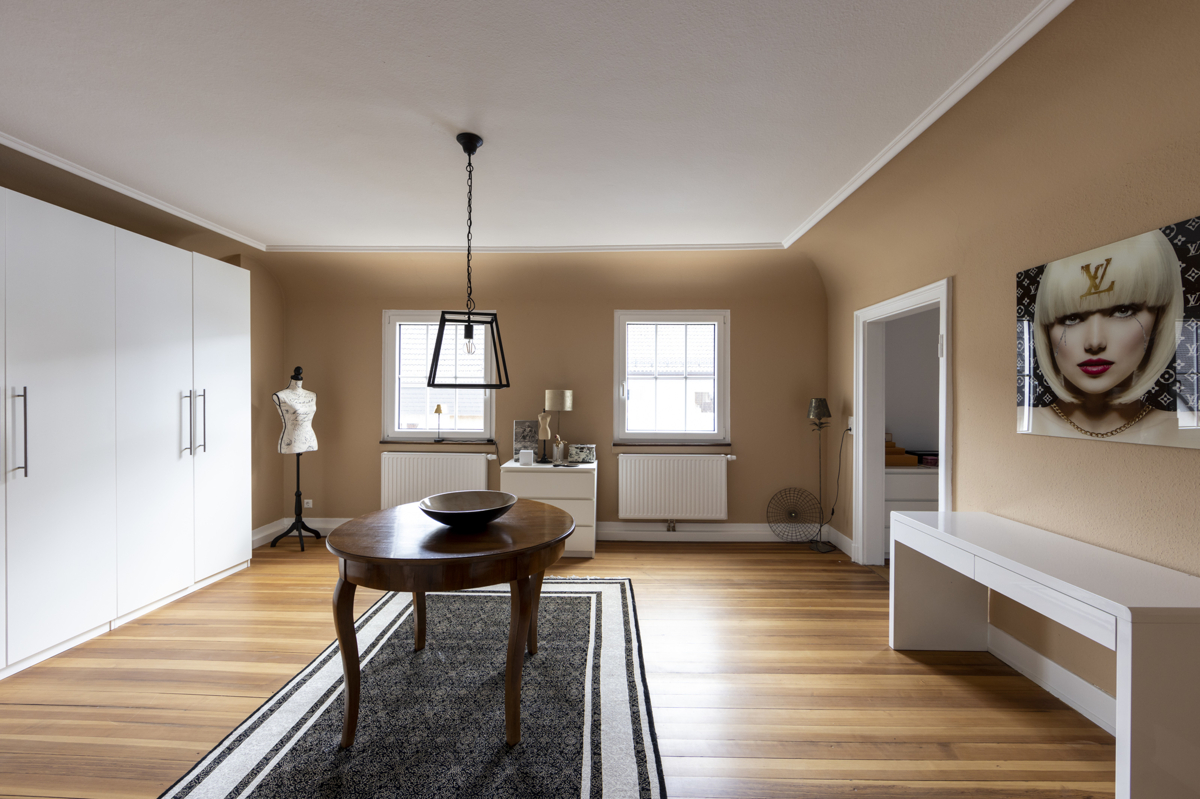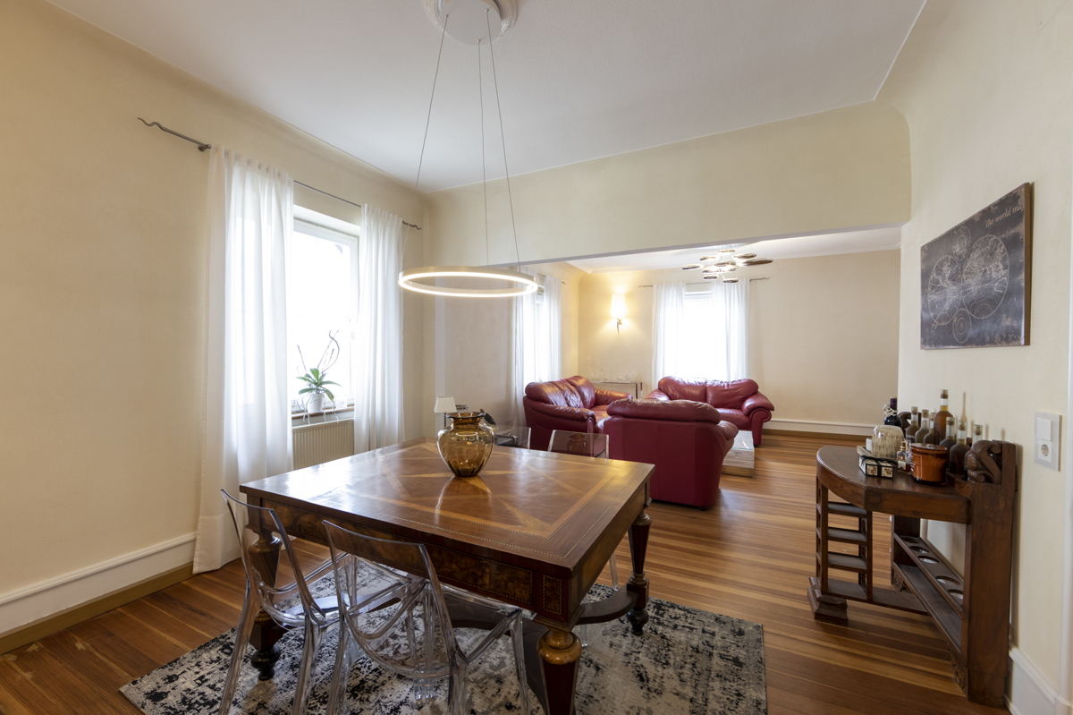 Das Anwesen besticht durch 346m² exklusive Räumlichkeiten verteilt auf zwei Etagen. Hier treffen nostalgische Akzente auf modernen Komfort. Eine umfangreiche und stilvolle Renovierung im Jahr 2016 sorgt für das harmonische Miteinander von Tradition und Moderne.Räume MIT DETAILVERLIEBTHEIT