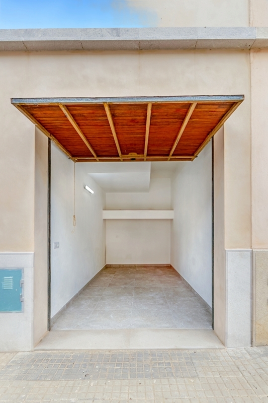 Sie betreten Ihr neues Stadthaus durch eine traditionelle mallorquinische Massivholztür. Ihr Stadtauto parken Sie bequem in Ihrer eigenen Garage. Auf der linken Seite befindet sich das erste der 3 Doppelzimmer, alle mit beleuchteten Einbauschränken und en-suite Badezimmern mit Handtuchtrocknern. Das Highlight hier: die extra hohe mallorquinische Holztür.
