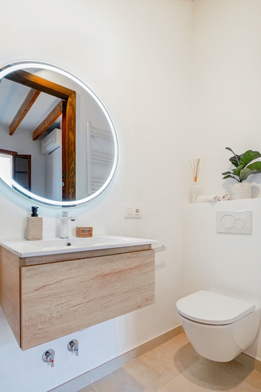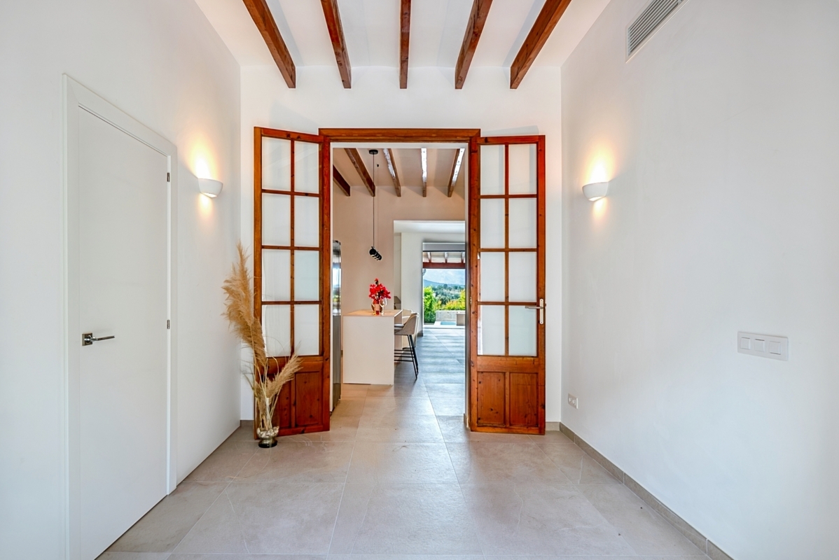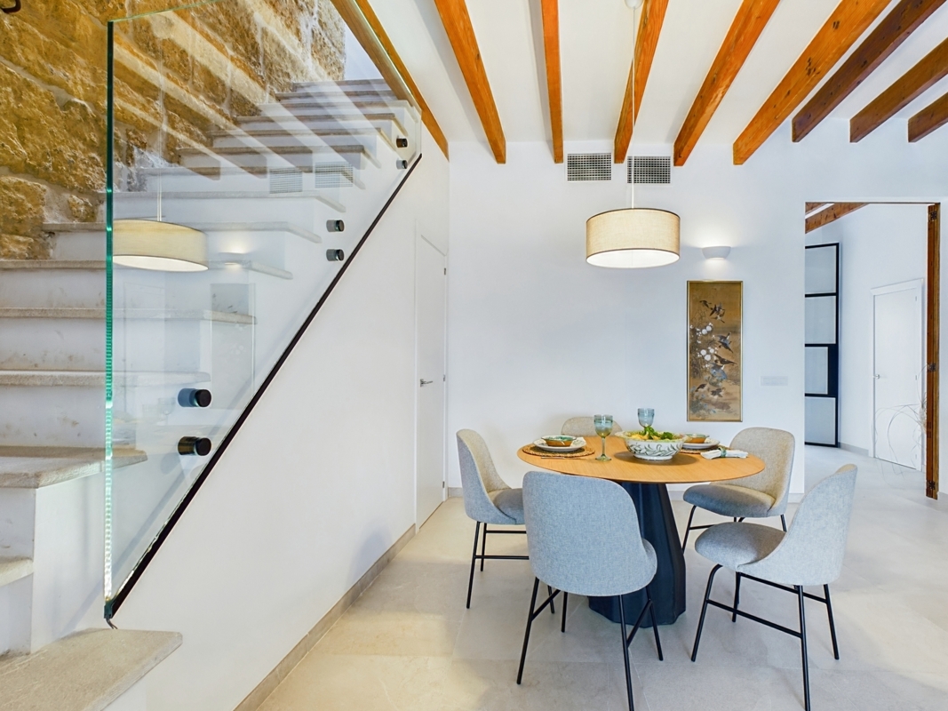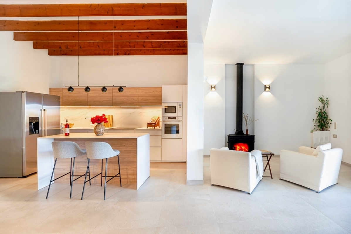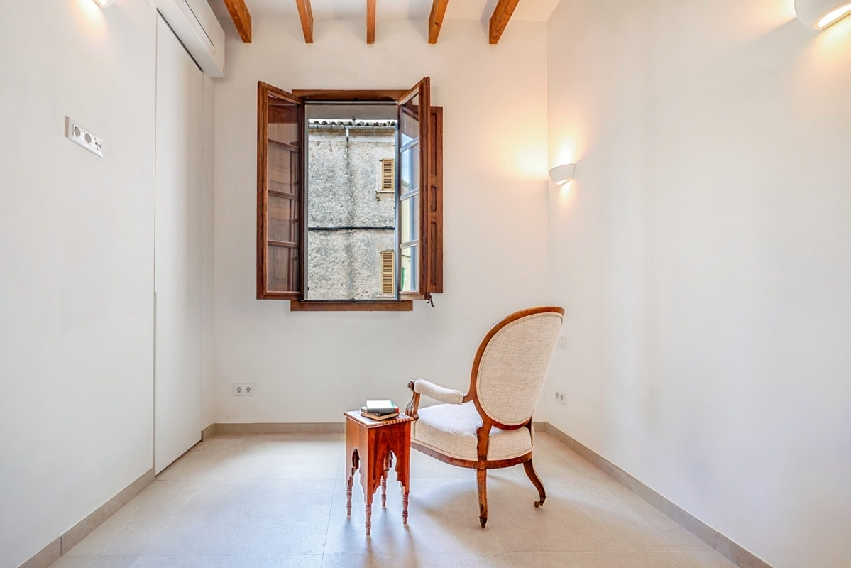 Historisches Stadthaus, das 2023 komplett renoviert wurde, mit modernster Technik und fantastischem Blick im Zentrum Mallorcas.Der mallorquinische Naturstein und die Fassade des neuen Stadthauses glänzen golden im mediterranen Licht der Insel. Sein blauer Pool funkelt in der Sonne, wenn man aus dem loftartigen Interieur tritt und den Blick über das Tramontana-Gebirge schweifen lässt. Die Kirche und der zentrale Platz mit tollen Restaurants sind nur eine Minute zu Fuß entfernt.
