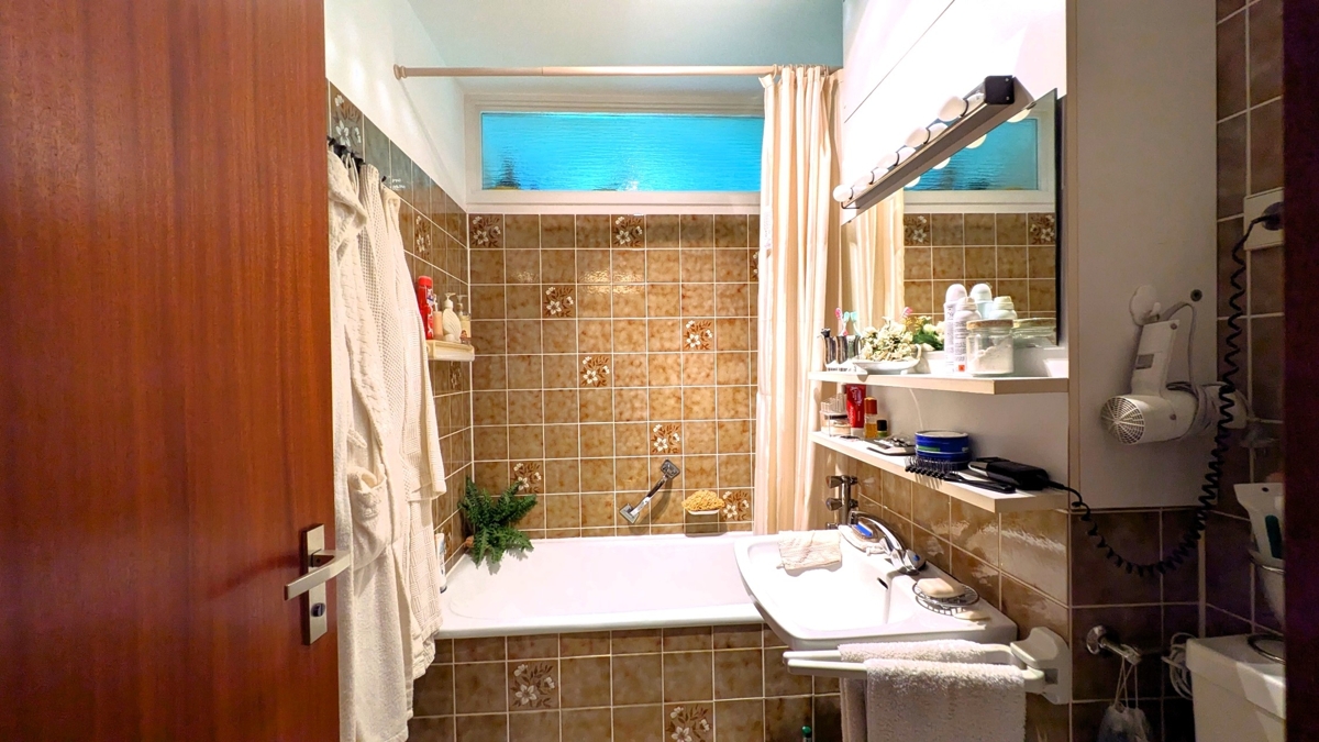 Das Bad/WC ist Gaishöllpark-typisch gestaltet und verfügt über eine Badewanne. Die Diele bietet ausreichend Platz für Garderobe und Schuhschrank. Vom Balkon aus genießt man einen schönen Blick ins Grüne und kann die Sonne am Morgen optimal nutzen.