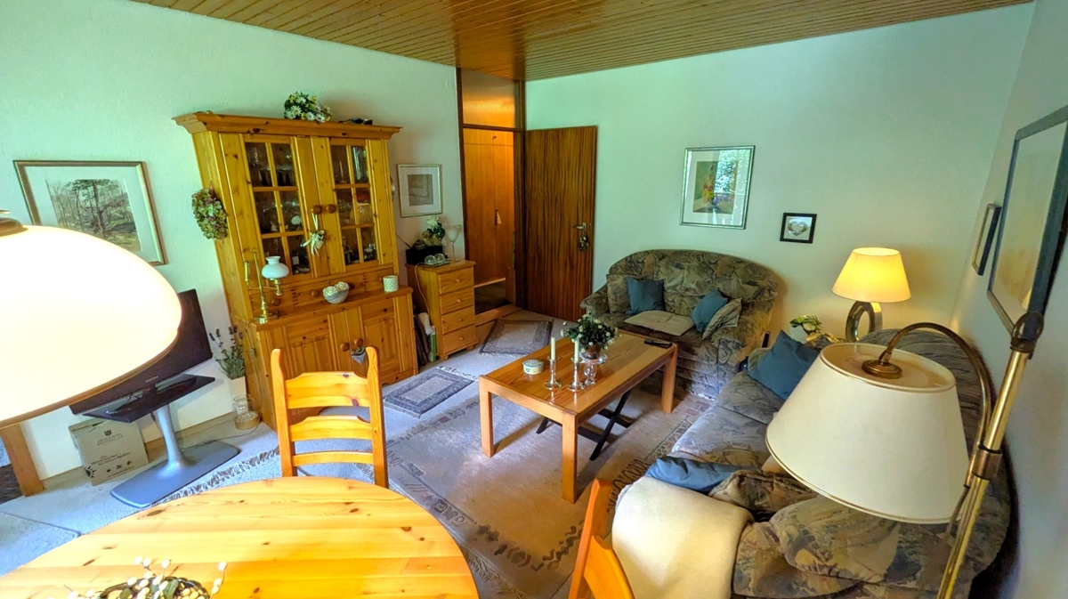 Ein Kellerraum bietet zusätzlichen Stauraum für persönliche Gegenstände und der Außenstellplatz sorgt für bequemes Parken in unmittelbarer Nähe. Die Wohnung ist vollständig möbliert und somit sofort bezugsfertig.