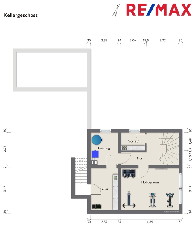 Das Kellergeschoss umfasst einen Kellerraum, Hobbyraum, Heizraum sowie ein Vorratsraum.