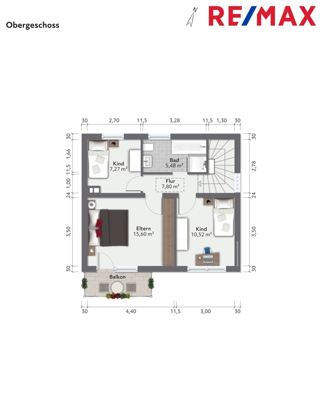 Obergeschoss, Wohnfläche ca. 41,47 m²