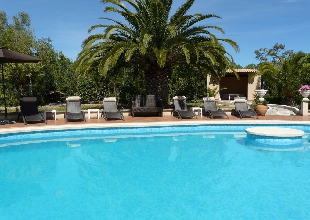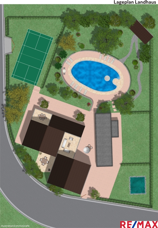 Auf einer Grundstücksfläche von ca. 12.000 m² befinden sich das lichtdurchflutete Haupthaus mit mehreren freien sowie überdachten Terrassen, ein 90 m² separates Gäste-Apartment, großzügiger Poolbereich mit Chilloutzone - eingebettet in einen 2000 m² gr. mediterran angelegten Garten und BBQ Bereich.