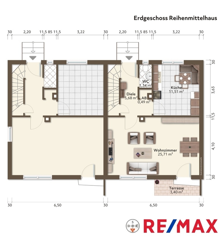 Reihenhaus in privilegierter Lage – 93 m² Wohnfläche – kinderfreundliche Umgebung.Das bezaubernde Reihenmittelhaus befindet sich in ruhiger und gehobener Wohnlage.
