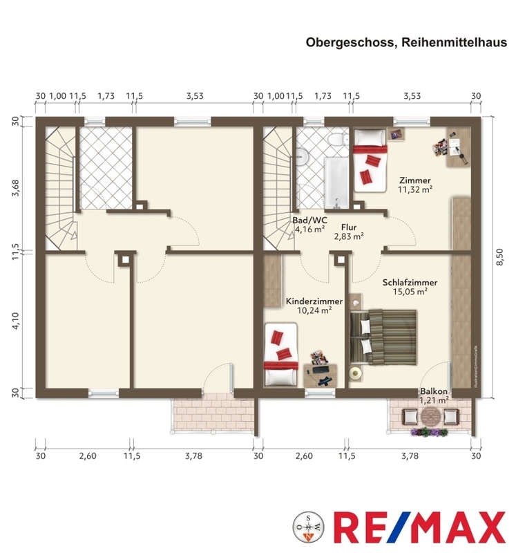 Schlafzimmer = 15,05 m²