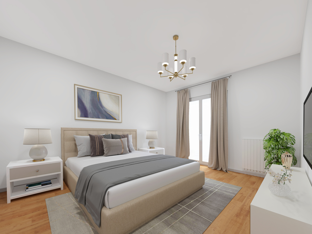 Hier befinden sich, das Badezimmer mit Wanne, ein großes Schlafzimmer sowie zwei weitere Zimmer.