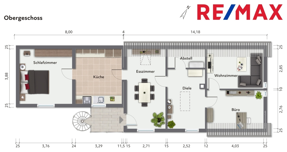 Zeitgleich wurde die Wohnung im OG separiert, das innenliegende Treppenhaus wurde rückgebaut und den Zugang der Obergeschosswohnung, über eine