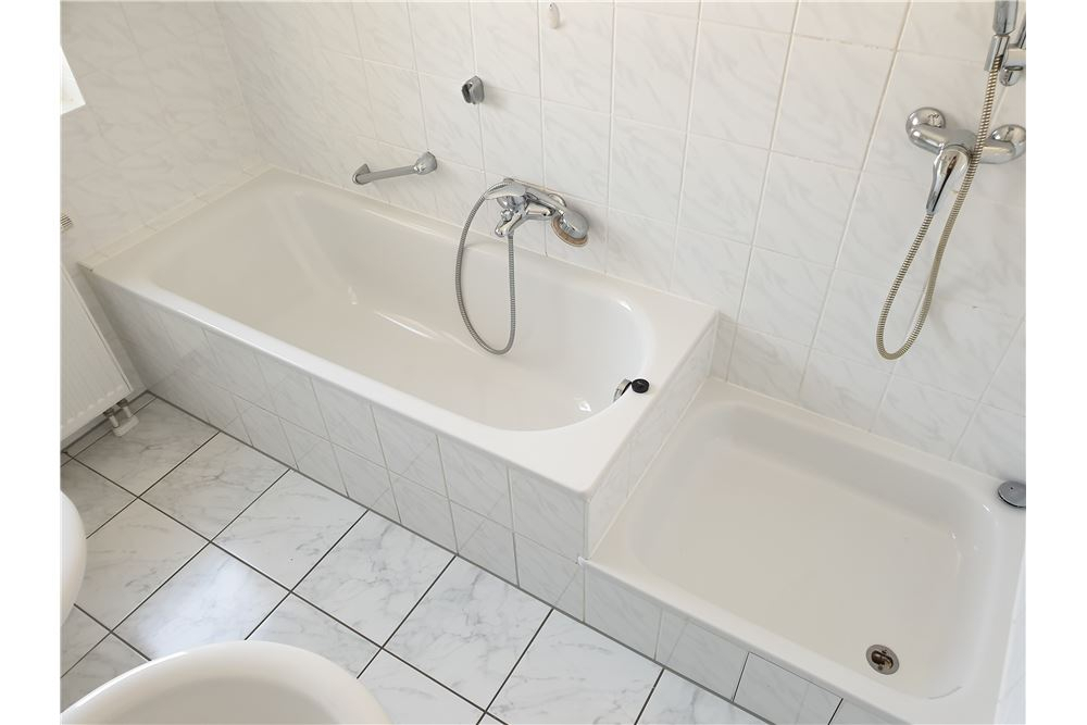 Das Bad verfügt über zwei separate Waschbecken, eine Badewanne und eine Dusche!