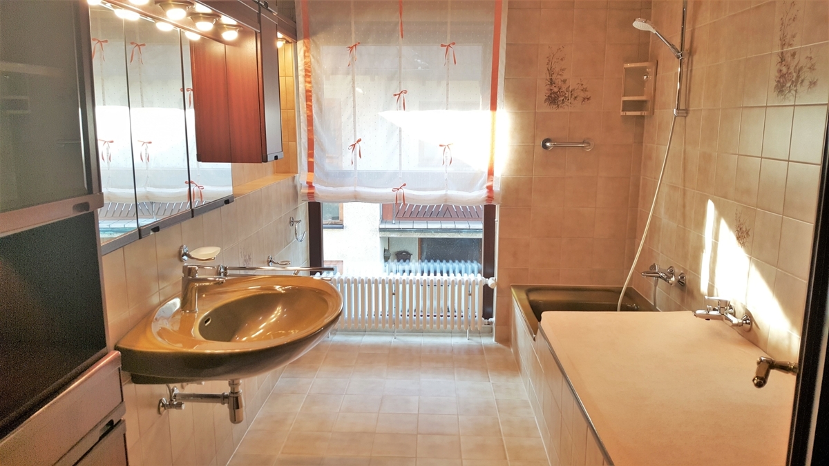 Das großzügige Tageslichtbad ist mit Dusche und Badewanne sowie hochwertigen Einbauschränken ausgestatten. Räumlich seperat davon befindet sich die Toitette.