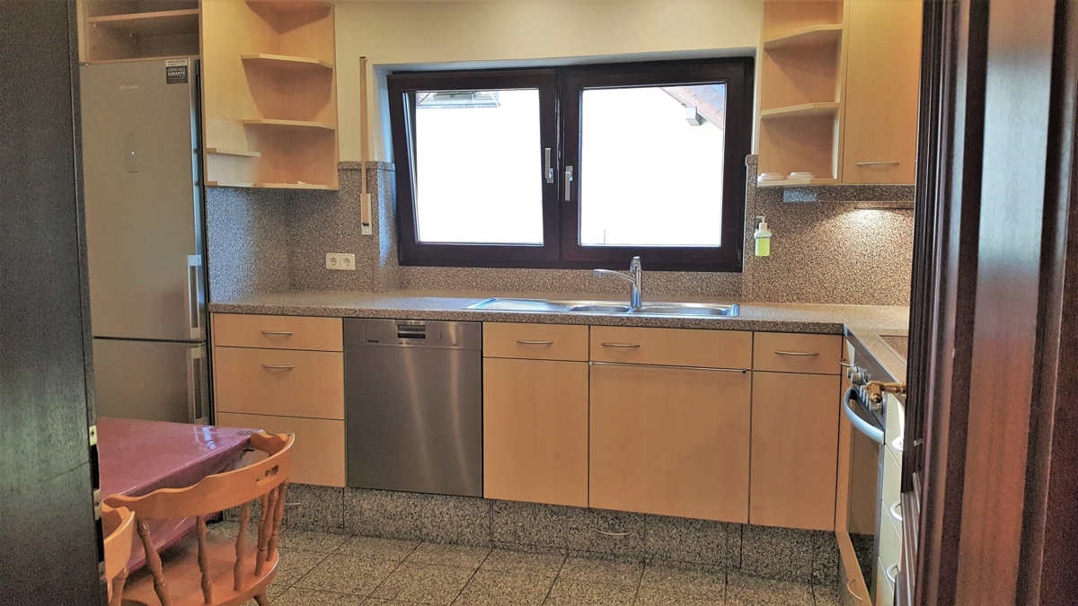 Eine gepflegte Einbauküche (Arbeitsflächen leicht erhöht mit 98 cm) mit vielen Unterbringungsmöglichkeiten steht Ihnen zur Verfügung und ist im Mietpreis enthalten.
