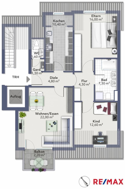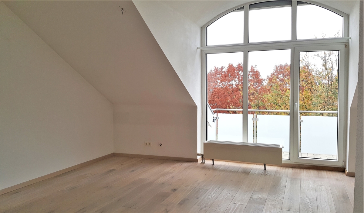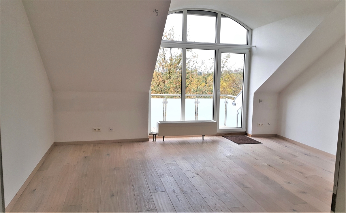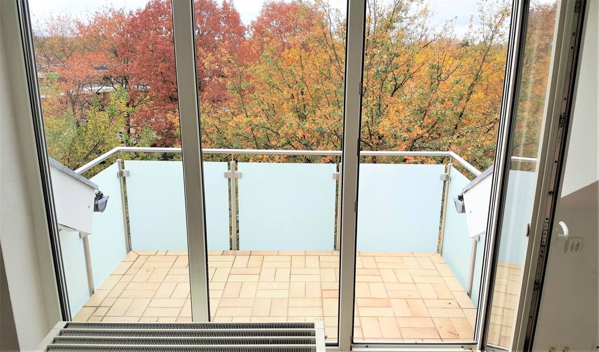 Diese sehr gepflegte und lichtdurchflutete 3-Zimmer-Wohnung im Dachgeschoss eines Mehrfamilienhauses (4. OG, Fahrstuhl) lässt keine Wünsche offen: Wohn/Esszimmer und Schlafzimmer haben einen edlen Parkettboden, das Arbeits- oder Kinderzimmer sowie Diele und Flur einen pflegeleichten Laminatboden. Das mit großräumiger Dusche ausgestattete Bad sowie das Gäste-WC sind saniert und die Küche ist vollständig und hochwertig eingerichtet. Hier gibt es reichlich Arbeitsfläche und Stauraum. Vom Wohnzimmer aus kommen Sie auf den ebenfalls sanierten Balkon mit Blick in die Natur.Ein mobiles Klimagerät für besonders heiße Sommertage steht Ihnen zur Verfügung.