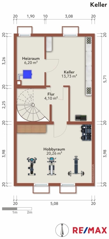 Das Haus ist komplett unterkellert: Das Untergeschoss bietet Ihnen außer dem Keller mit viel Stauraum sowie dem Heizraum auch einen vielseitig nutzbaren Hobbyraum.