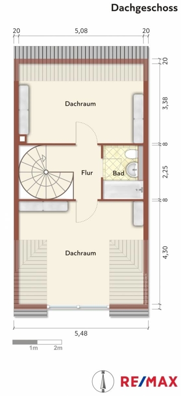 Das Dachgeschoss ist komfortabel ausgebaut mit zwei weiteren Räume, die als Kinder- oder Arbeitszimmer dienen können - auch hier einer davon mit bodentiefen Fenstern - sowie ein Duschbad mit WC.