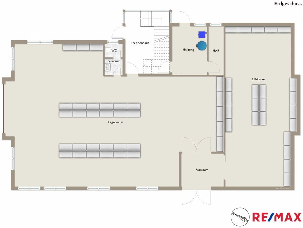 - Kühlraum (ohne Kühlgeräte!) ca. 80 m²