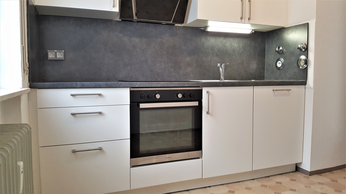 Die Wohnung verfügt über einen großzügigen Wohn-und Essbereich mit Balkon, ein Schlafzimmer mit Balkon (integrierte Abstellkammer), eine vollständig eingerichtete Küche und ein Tageslicht-Bad mit Badewanne und Waschmaschinenanschluss..