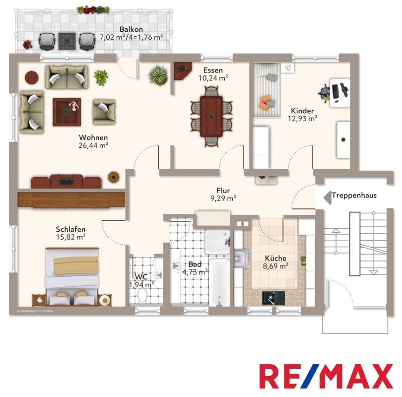Großzügige 3-Zimmer-Wohnung + Balkon + Garage