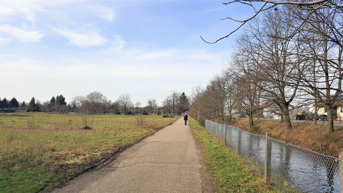 An die Straße schließt sich direkt ein Spazierweg ins Grüne an.