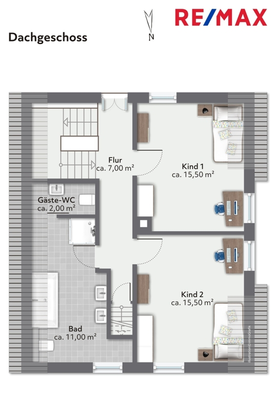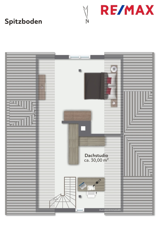 Ausgebauter Spitzboden, gesamt: 30,00 m²