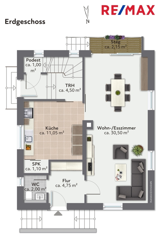 Separates Treppenhaus, mit separatem Seiteneingang: 4,50 m²