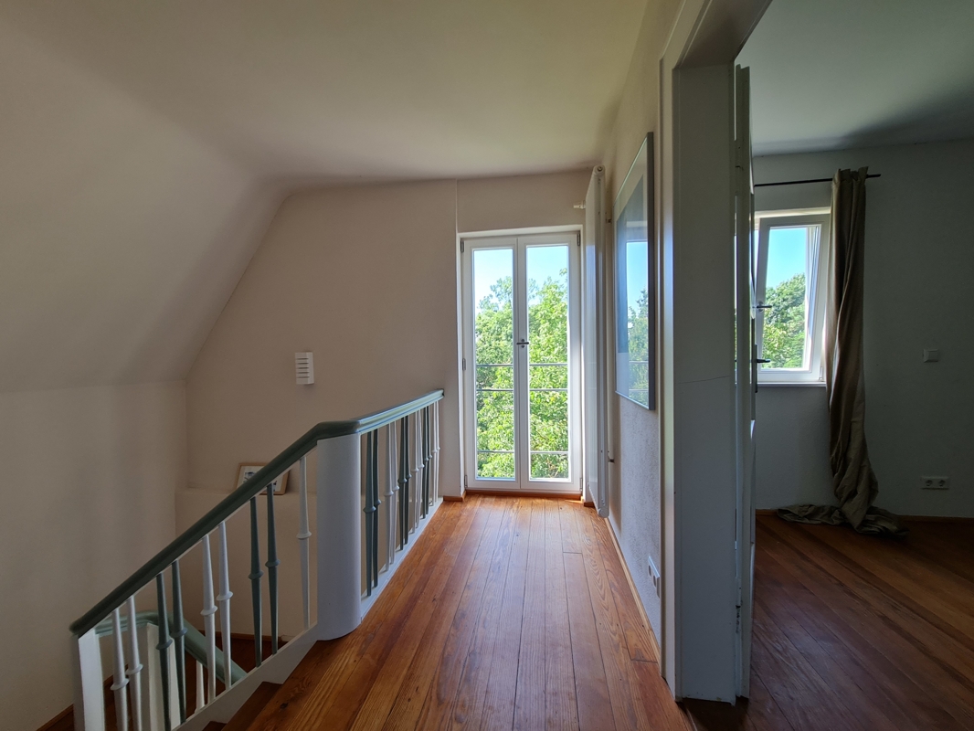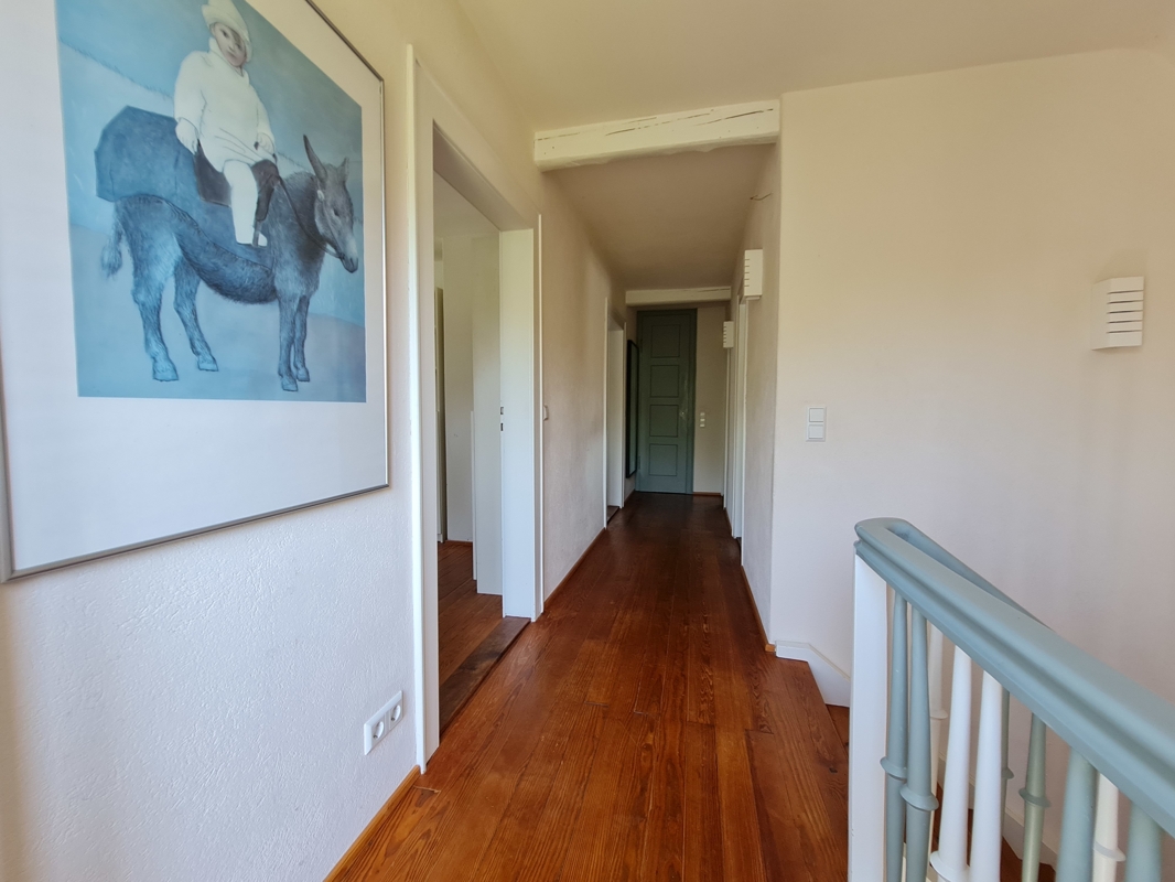 Original Vollholzdielen aus amerikanischer Redpine (Treppenhaus und im gesamten OG) aufgearbeitet und geölt