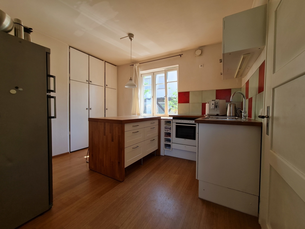 Das hinreisende Einfamilienhaus befindet sich in einer ruhigen Seitenstraße von Billigheim. Es wurde 2007/2008 aufwendig kernsaniert, dabei wurden hochwertige und baubiologisch einwandfreie Materialien ausgewählt und auf eine dampfdiffusionsoffene Bauweise wurde bewusst geachtet – siehe Liste. Im Erdgeschoss befinden sich ein großzügiges Wohn- und Esszimmer, eine offene Küche sowie das Gäste-WC. Ein separater Seiteneingang verbindet Untergeschoss, Erdgeschoss und Dachgeschoss. Im Dachgeschoss befinden sich zwei geräumige Schlafzimmer, mit Dachgauben und ein luxuriöses Bad mit Wanne und Dusche. Über eine Treppe erreicht man das traumhafte Dachstudio, das zum Relaxen, Musizieren und Studieren geradezu einlädt. Das Dachstudio ist besonders hell und einladend, da giebelseitig ein großes Fenster eingebracht wurde. Über dem Dachstudio befindet sich eine kleine Nische für zusätzlichen Stauraum.