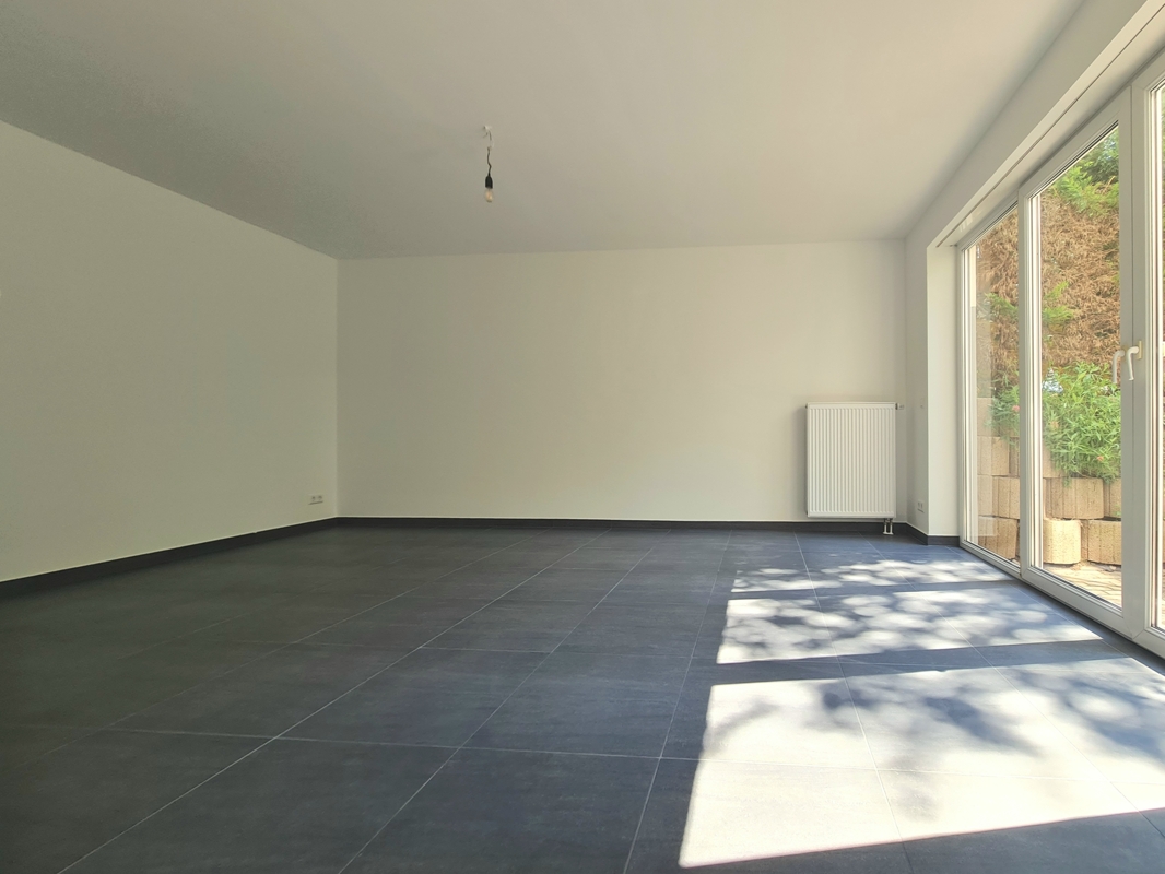 Zur hellen und modernen Wohnung gelangen Sie über einen separaten und überdachten Eingangsbereich. In der Wohnung befindet sein ein großzügiges Wohn- und Esszimmer, an das sich die Küche und die ebenerdige Terrasse anschließen. Über den Flur erreichen Sie die Abstellkammer, das moderne und großzügige Bad und das geräumige Schlafzimmer.