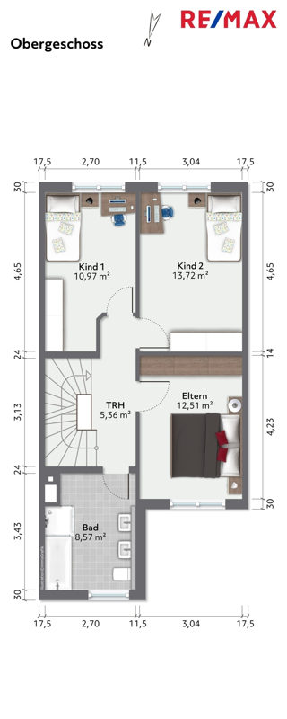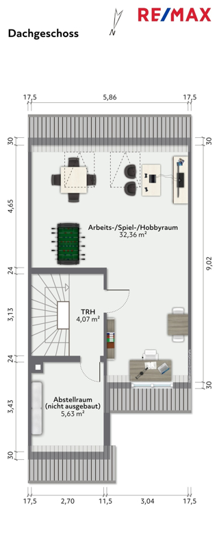 Dachgeschoss = 36,43 m² Wohnfläche plus 5,63 m² Nutzfläche