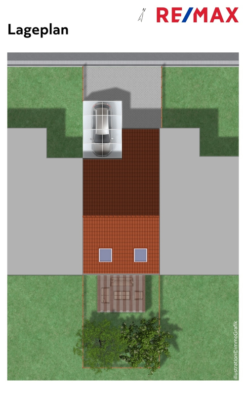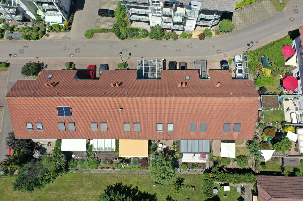 Über eine ausziehbare Dachbodentreppe gelangt man in den gedämmten Dachspitz. Vor dem Haus befinden sich ein überdachter Carport mit einem abschließbaren Abstellraum für z.B. Fahrräder (attraktive Stahlkonstruktion mit Glasdach) sowie ein KFZ-Stellplatz. Hinter dem Haus liegt der Gartenbereich mit einer großzügigen Terrasse und einem kleinen pflegeleiten Kräutergarten. Die großzügige Terrasse lädt zum Erholen und Verweilen ein, liegt ruhig, gewährt einen Blick ins Grüne und ist für eine überdachte Pergola bzw. einem Wintergarten prädestiniert – siehe Nachbarschaft.