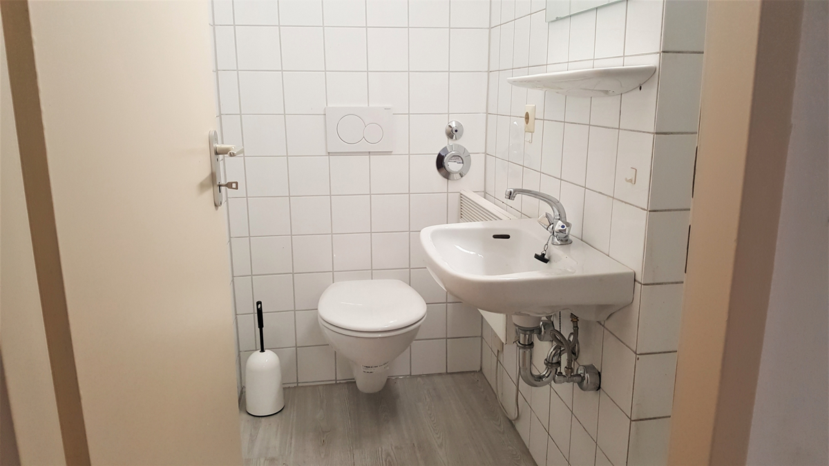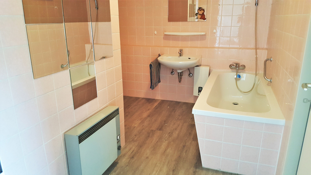 Das innenliegenden Badezimmer mit Wanne bietet ausreichend Platz für Waschmaschine und Trockner. Eine Dusche befindet sich im seperaten WC.