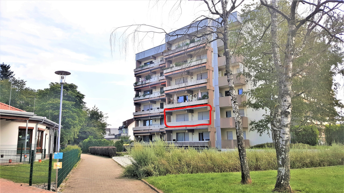 Diese helle 2-Zimmer-Wohnung befindet sich im 1. Obergeschoss eines Mehrfamilienhauses in Ortsrandlage von Ötigheim.Sowohl das Wohnzimmer als auch das Schlafzimmer führen auf den langgezogenen Balkon, der zum Entspannen einläd mit Blick ins Grüne und auf den Kindergarten.