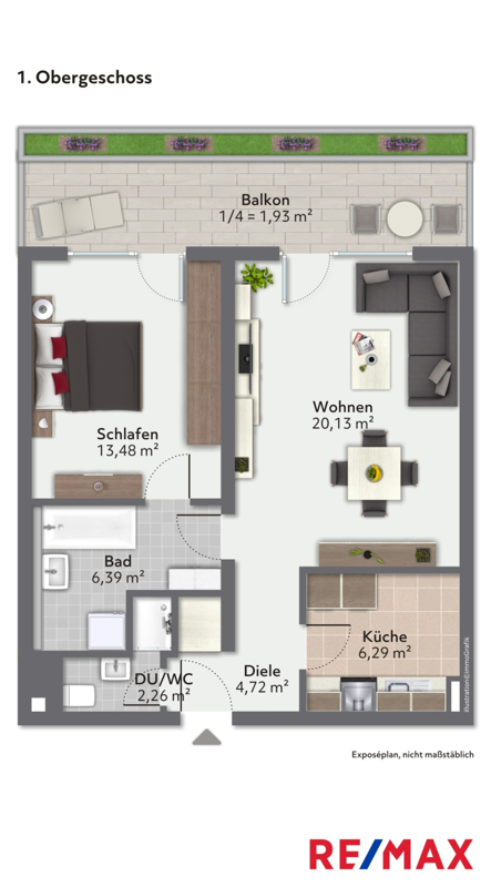 Zur Wohnung gehören außerdem ein Kellerraum sowie ein Tiefgaragenstellplatz.
