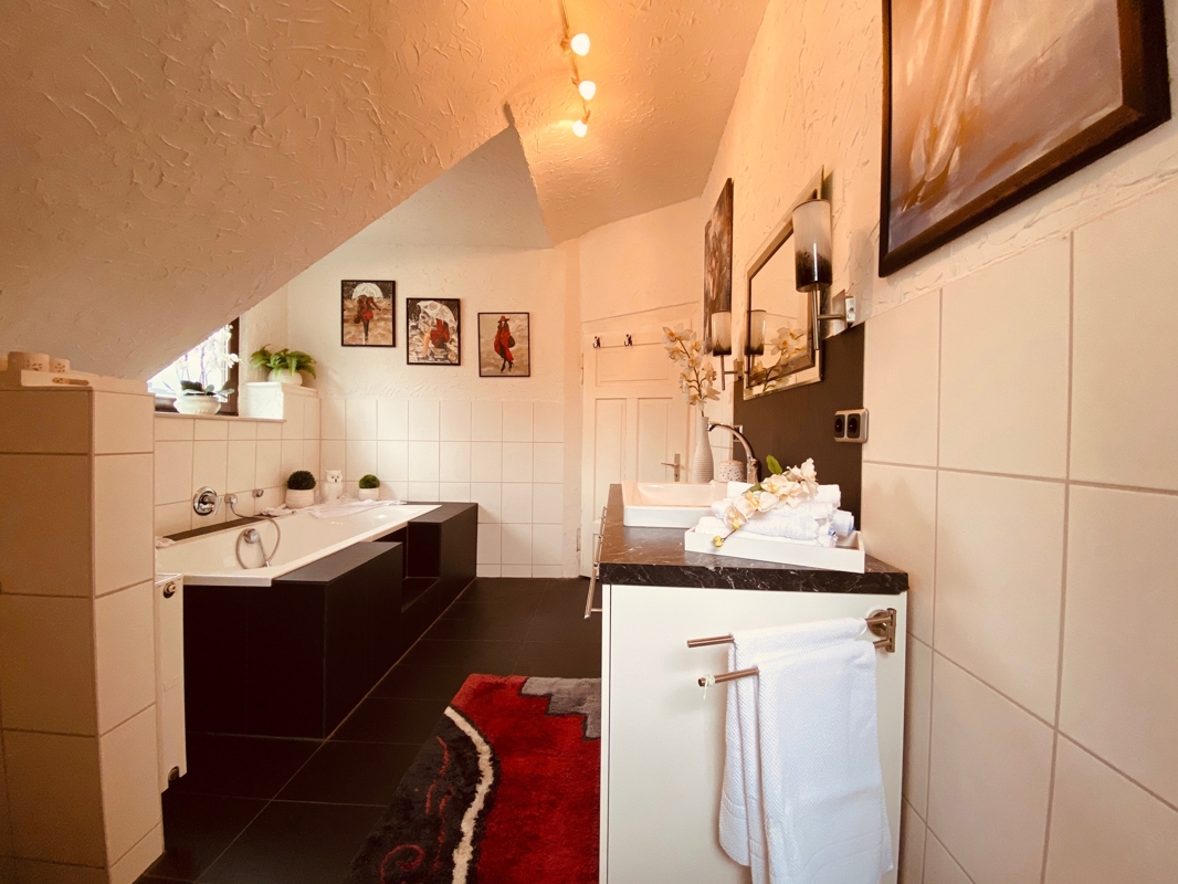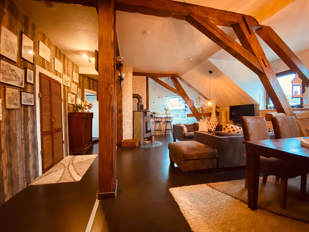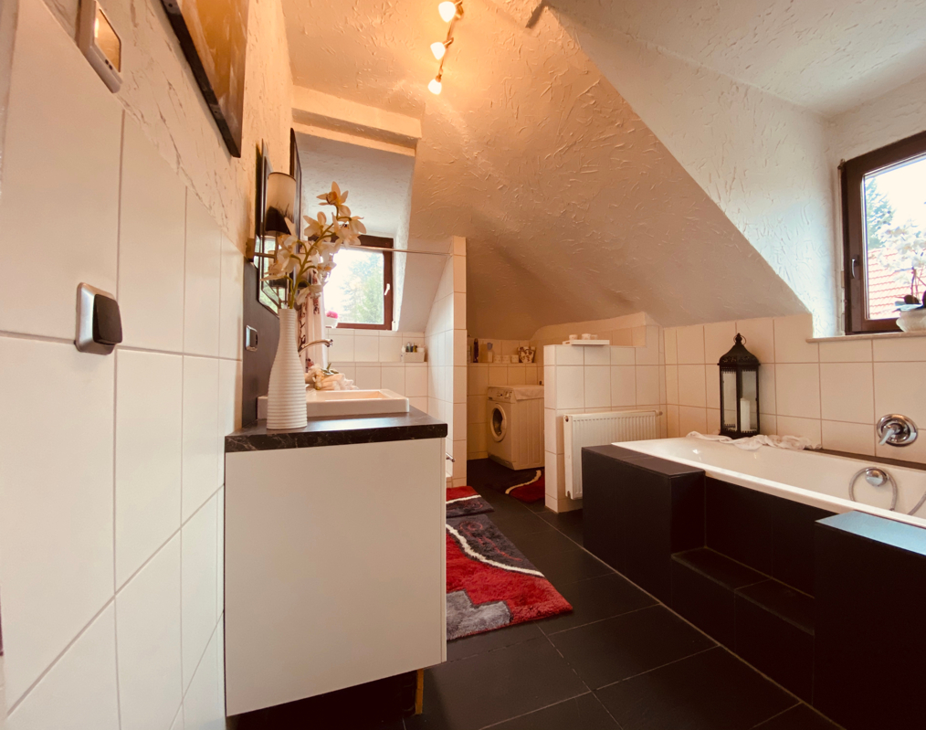 Um es heutigen Bedürfnissen anzupassen, wurde dieses Haus mit einer Gesamtwohnfläche von 273 m², in 3 Wohneinheiten aufgeteilt und ausgebaut. 2 Wohneinheiten - 1 OG sowie das Dachgeschoss incl. Zwischenstockwerk mit einem Gäste Apartment, befinden sich im Haupthaus. Die Erdgeschoss Wohnung verfügt über einen eigenen, separaten Hauseingang .