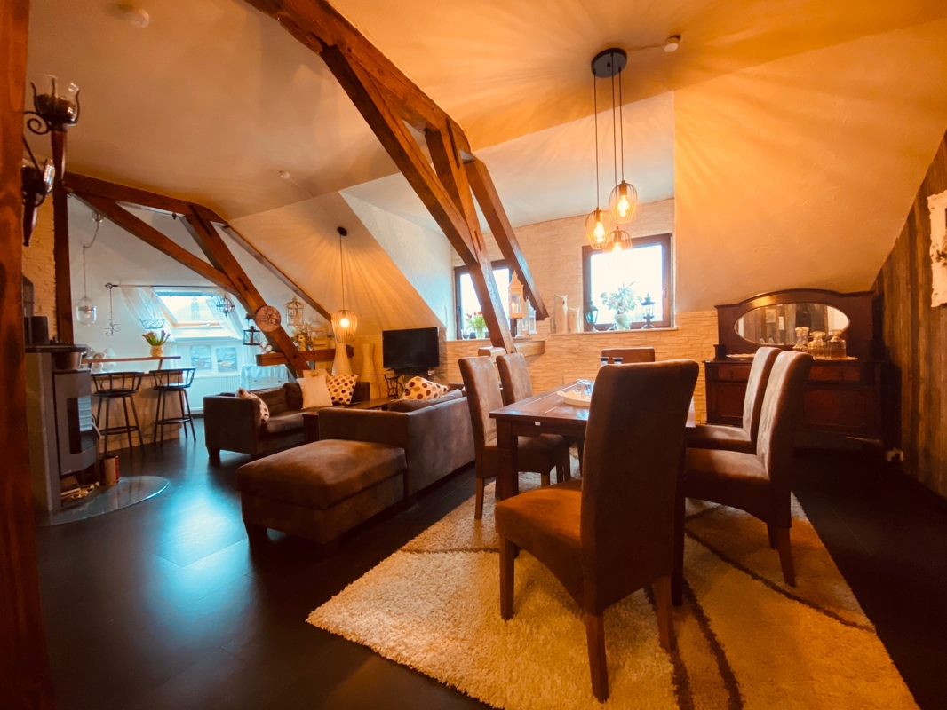 Besonderheit: hohe Decken, offene Balken, alte, geschwungene Holztreppe, antike Gründerzeit Wohnungseingangstüren mit Stichbogen im Oberlicht, großzügige Dachterrasse, Zwischenstockwerk.