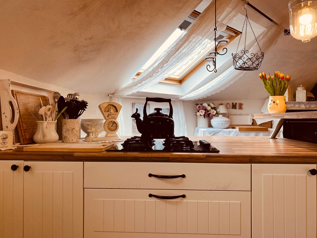 Drei schöne Einbauküchen mit einem Gasherd sind im Kaufpreis enthalten.