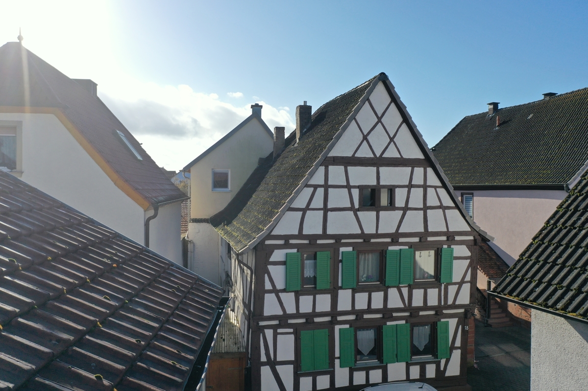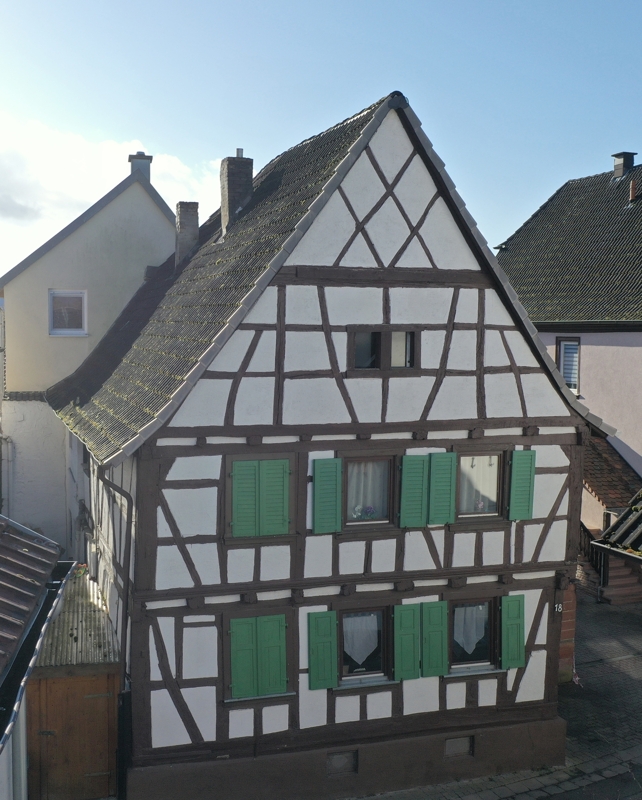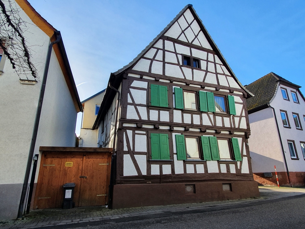 Im Ortskernbereich von der Gemeinde Billigheim-Ingenheim an der Südlichen Weinstraße, steht dieses teils mit Fachwerk erbaute 2 Familienhaus auf einem 120 m² großen Grundstück.