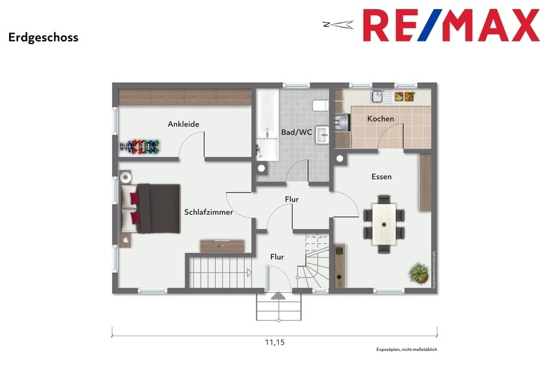 Das Fachwerkhaus verfügt im EG über einen Windfang mit Zugangstreppe zu der Wohnung im Obergeschoss sowie Eingang – Wohnung im Erdgeschoss.