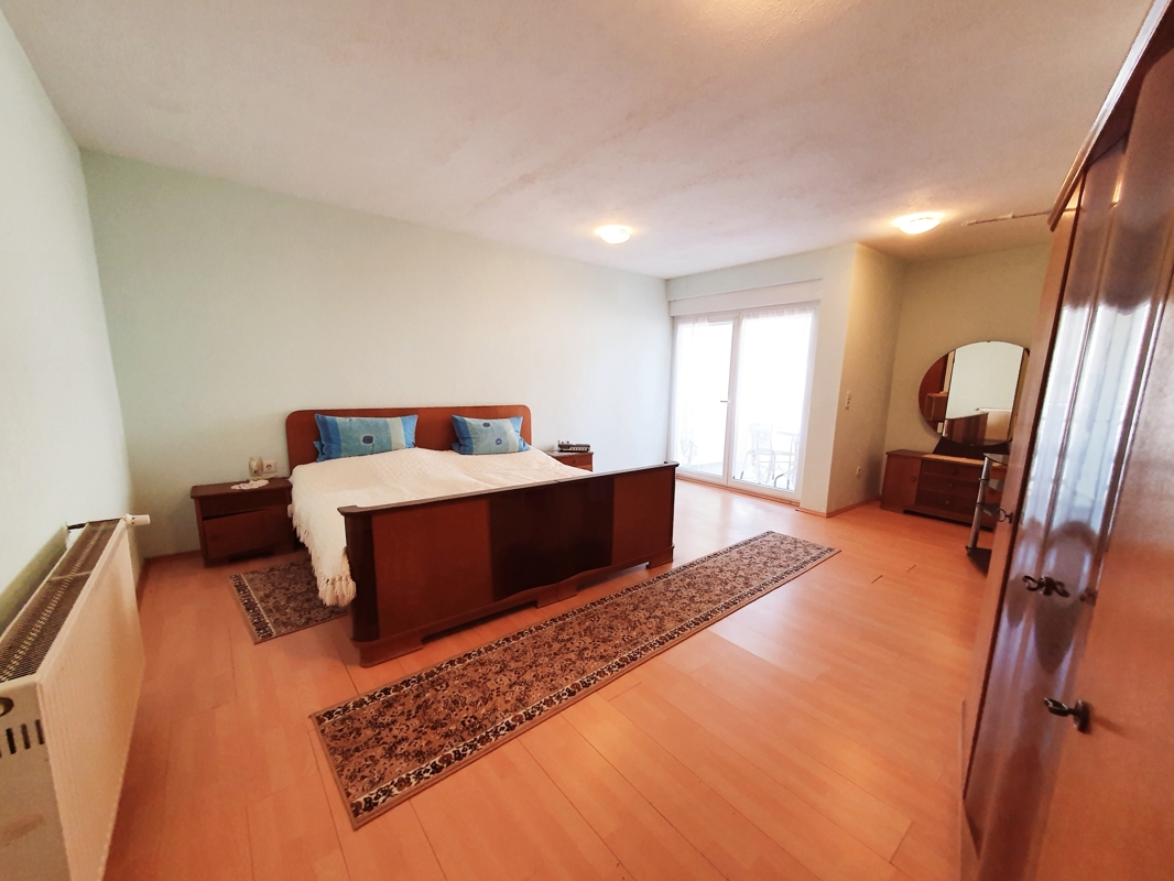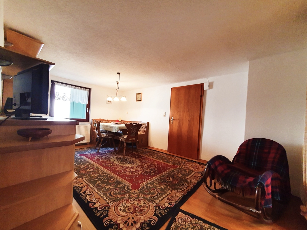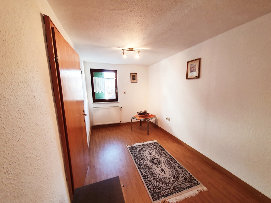 Die Wohnung im Obergeschoss verfügt über eine Diele mit Zugang ins Wohnzimmer und ein weiteres kleines Zimmer (nutzbar als Büro oder Schlafraum) angrenzend befindet sich das Badezimmer, ein geräumiges Esszimmer mit Zugang Küche (EBK vorhanden) sowie ein sehr schönes, großes Schlafzimmer mit Balkon (im Anbau aus dem Jahr 2010)